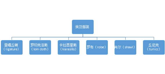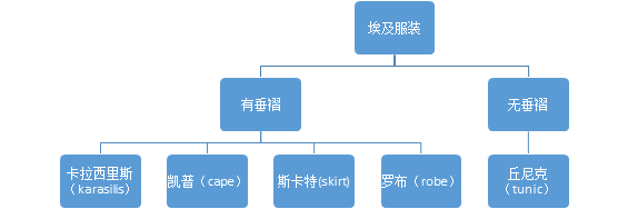 埃及男女装造型基本相同,不分性别,女装在丘尼克和肖尔这两个品种上比男装变化更加丰富,在色彩、纹样和装饰方面,女装也比男装丰富。