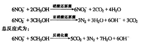 (NO2-)还原为氮气的过程。反应如下:(以甲醇为外加碳源)
