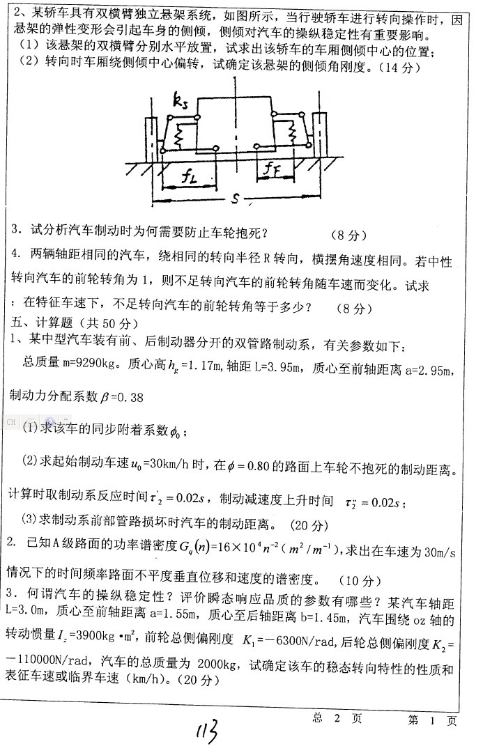 专业课考研资料 本站小编 免费考研网 2019-03-27汽车理论 填空 汽车行驶时,地面对驱动轮的切向反作用力不应小于___、___、___之和,同时也不可能大于___与___的乘积。 变速器各相邻档位速比理想上应按等比级数分配,为的是___提高汽车的___。 研究平顺性的目的是___,使乘坐者不舒服的感觉不超过一定界限,凭顺性的评价方法有主观方 ...