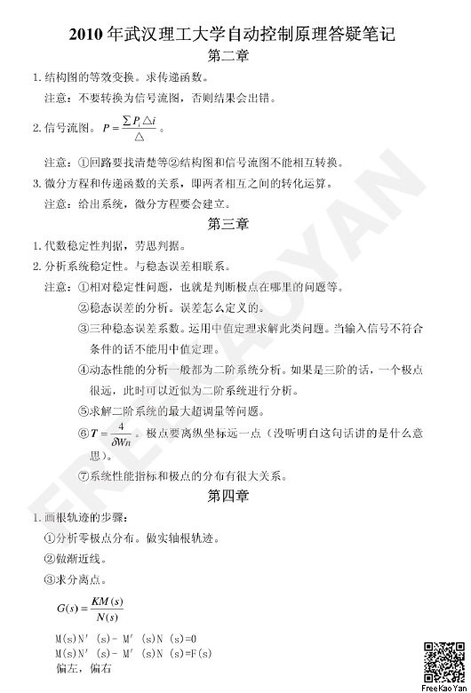 • 自动控制原理考研辅导班笔记 钟海秋教授