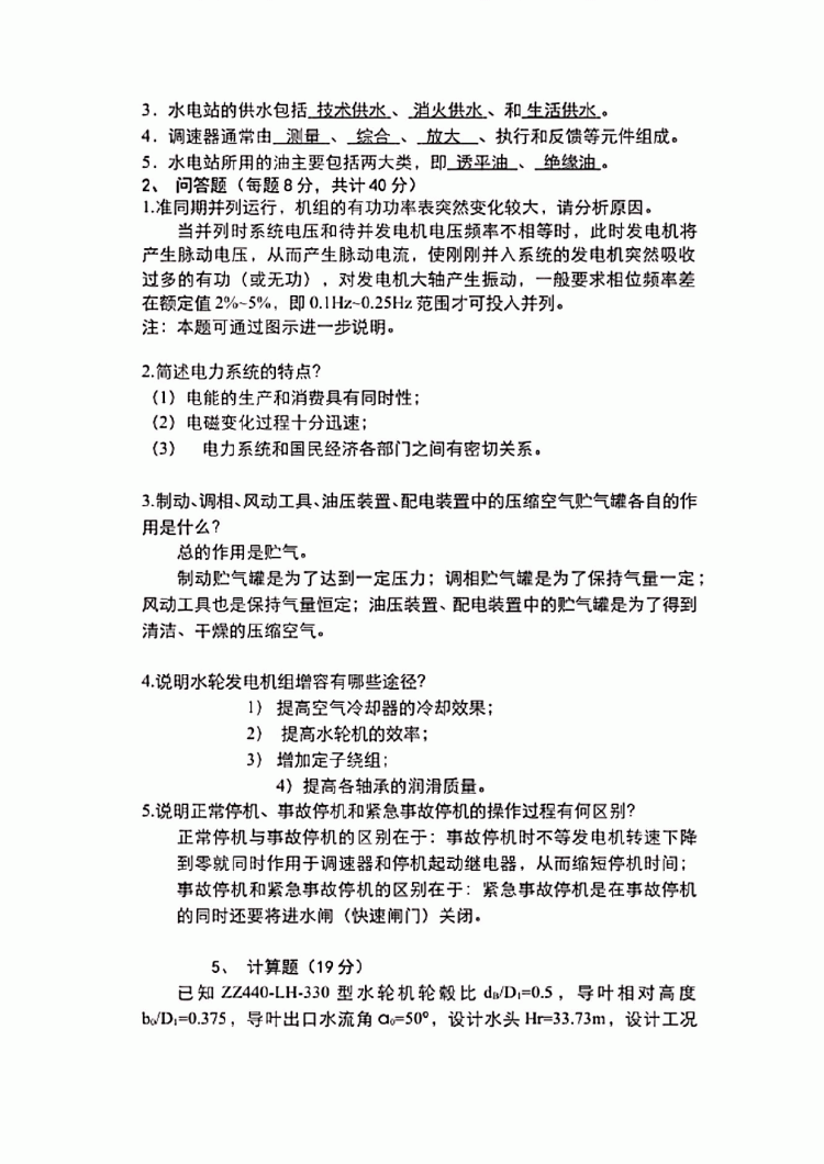 河海大学水轮机考研及期末考试复习真题(37)