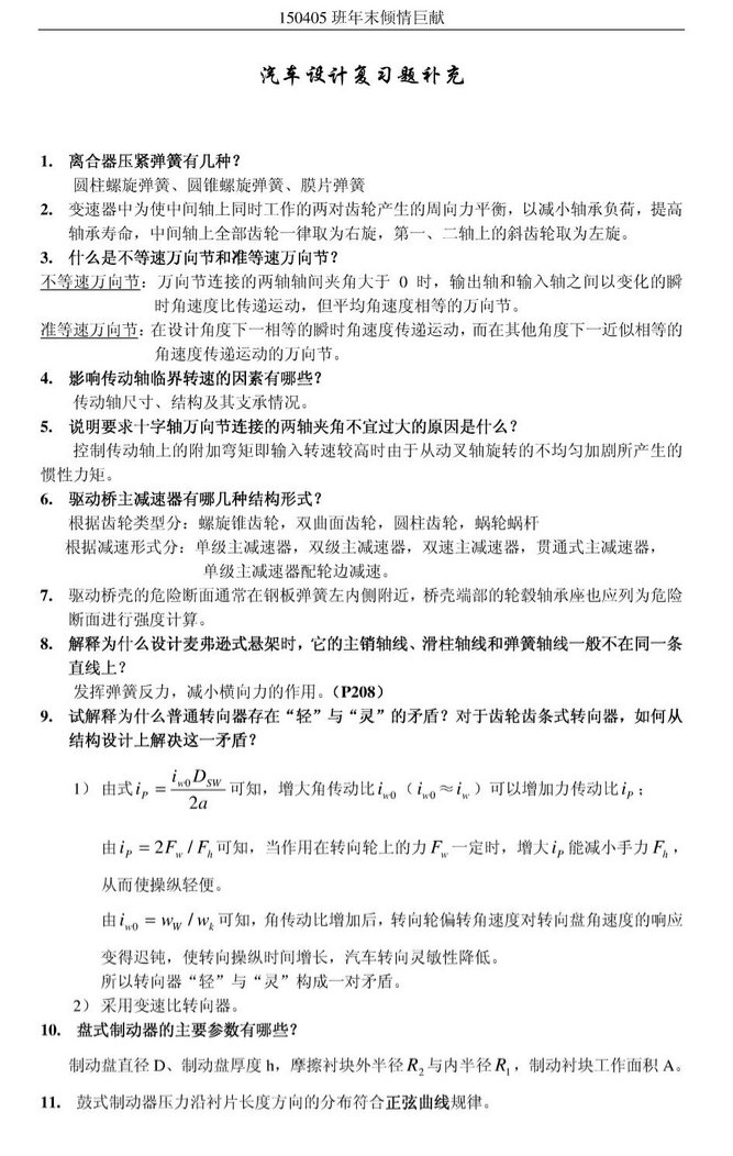 • 吉林大学2009年汽车理论设计复试笔试试题