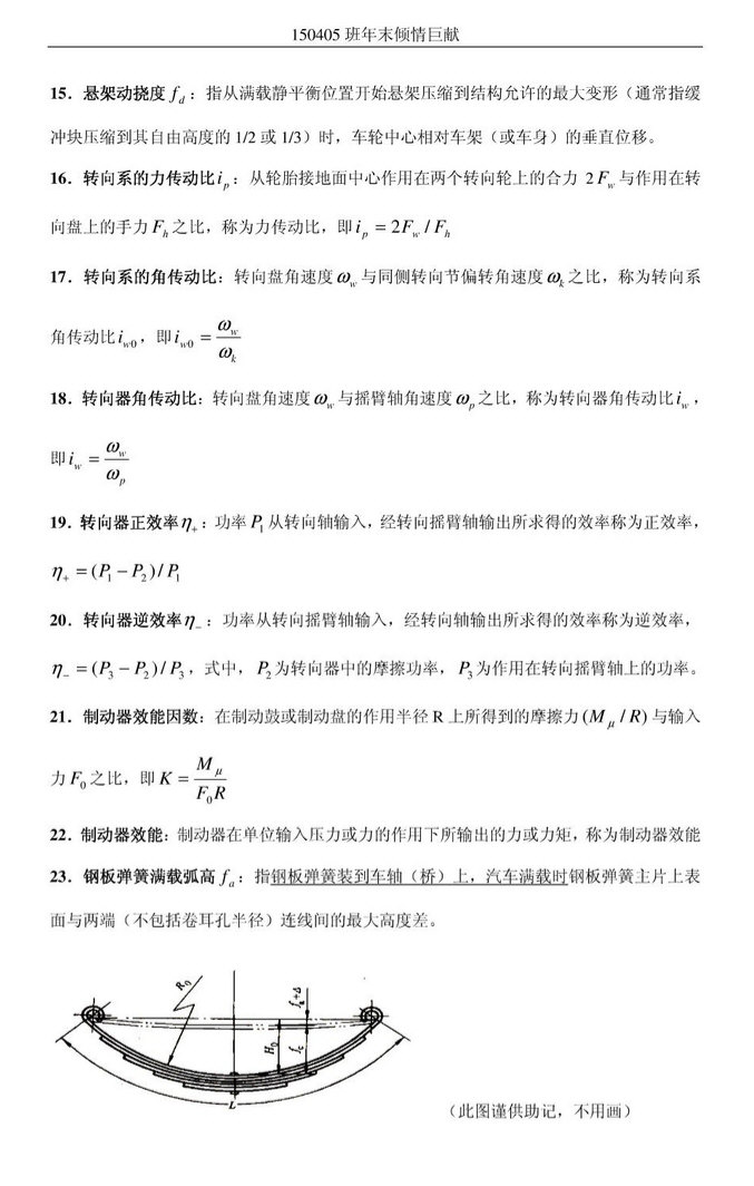 吉林大学2009年复试笔试试题 汽车理论 一、 汽车的动力性指标是什么? 二、 汽车行驶方程? 三、 燃油经济性评价指标是什么? 四、 汽车通过性的几何参数有哪些? 五、 汽车平顺性的评价指标是什么? 六、 表征稳态响应有哪几种形式? 七、 滑动率与制动力系数之间的关系? ...