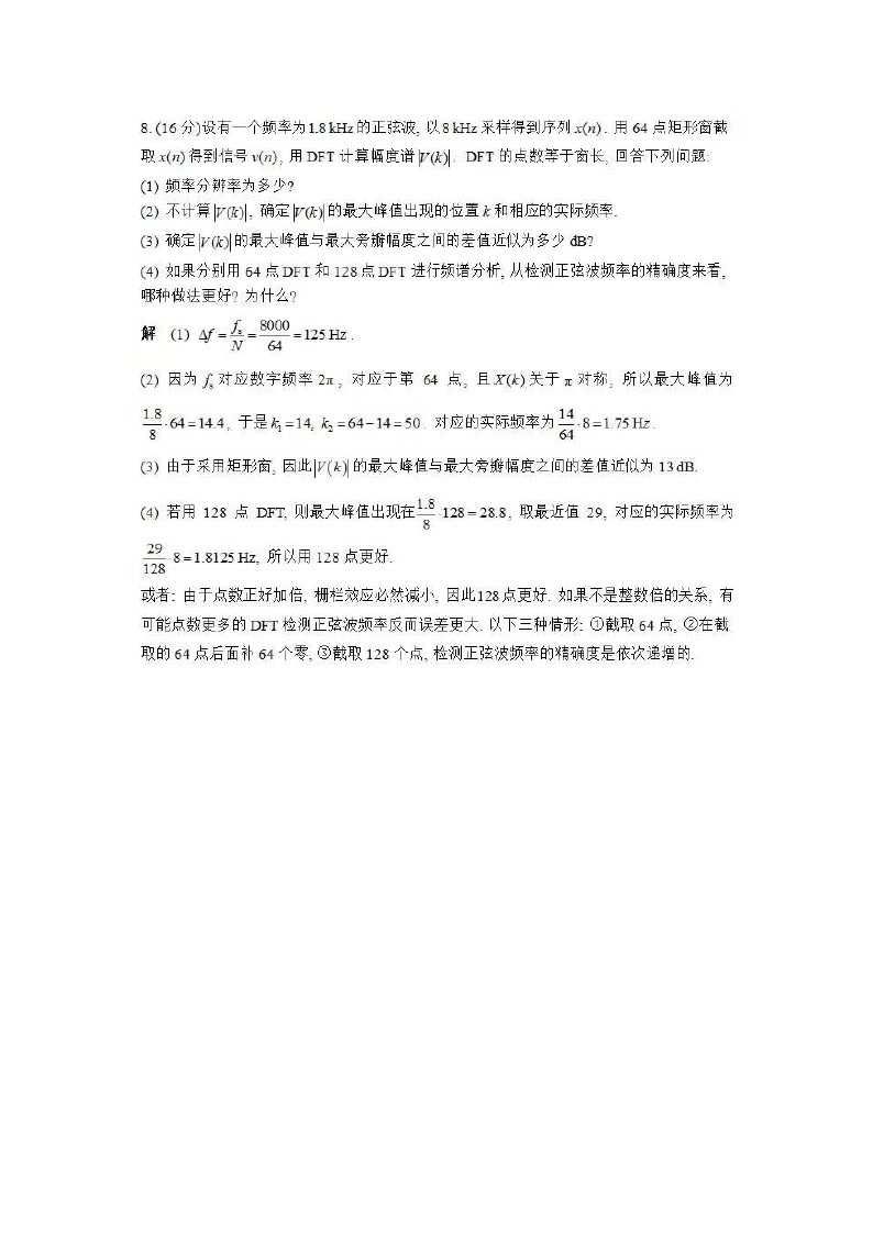 2018杭州电子科技大学考研信号系统DSP数字信号处理部分试题答案全解全析(13)