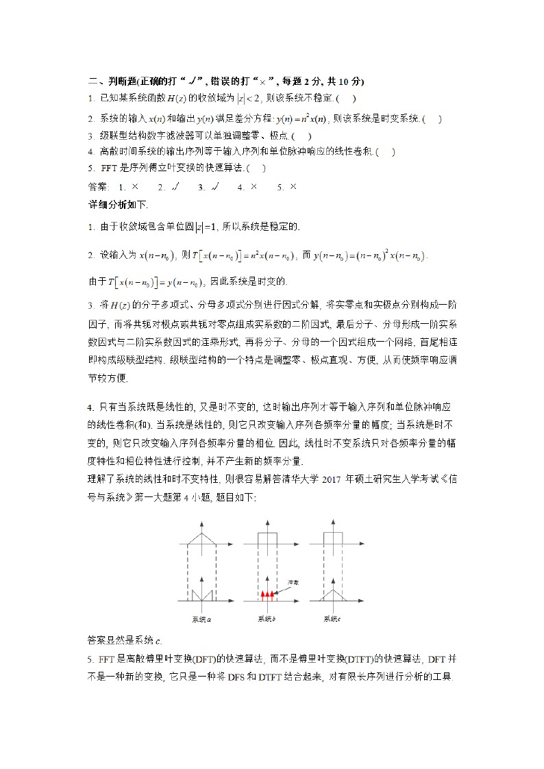 2018杭州电子科技大学考研信号系统DSP数字信号处理部分试题答案全解全析(6)