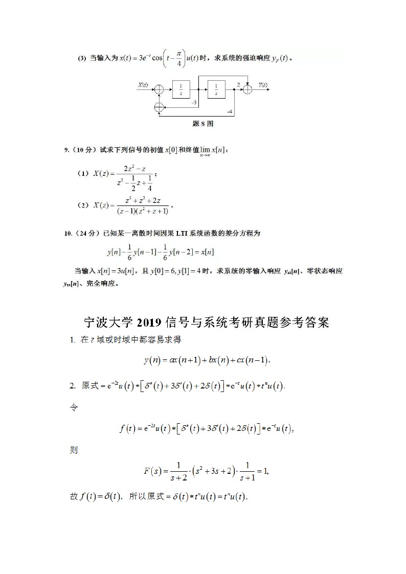 2019宁波大学信号与系统912考研试题答案全解全析(2)