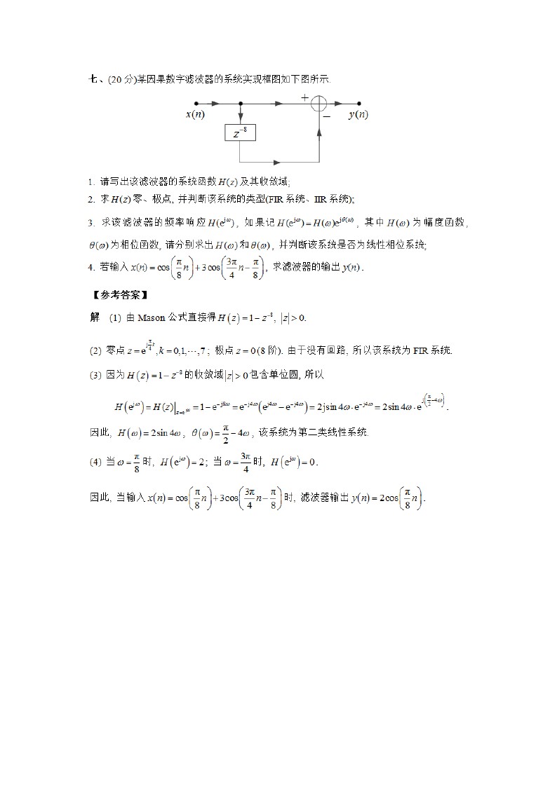 2018南京航空航天大学考研信号与系统试题答案全解全析(17)