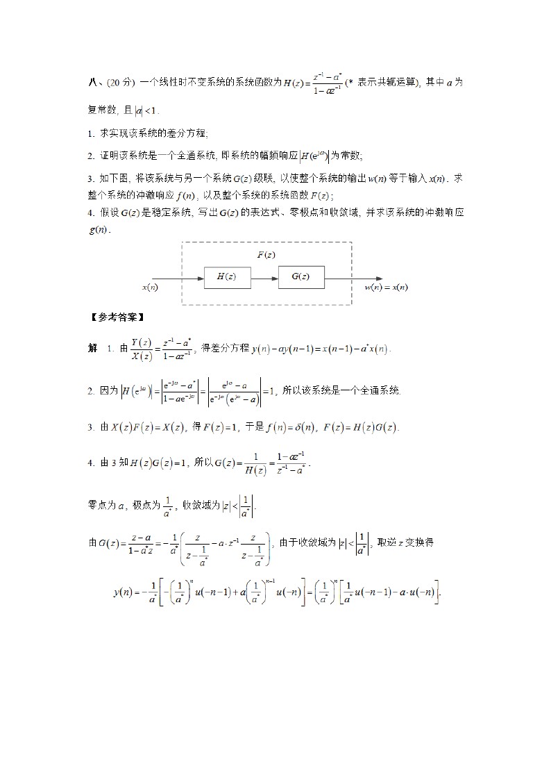 2018南京航空航天大学考研信号与系统试题答案全解全析(18)