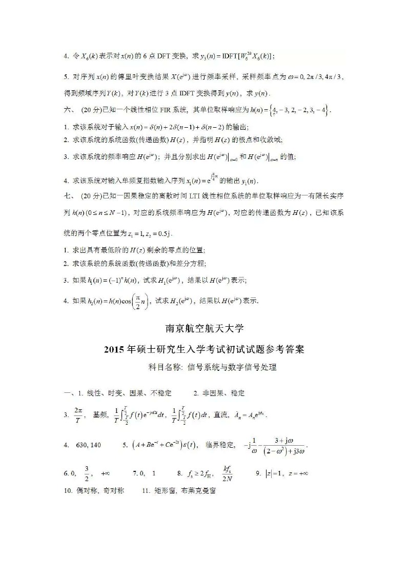 2015南京航空航天大学考研信号系统初试试题答案全解全析(4)