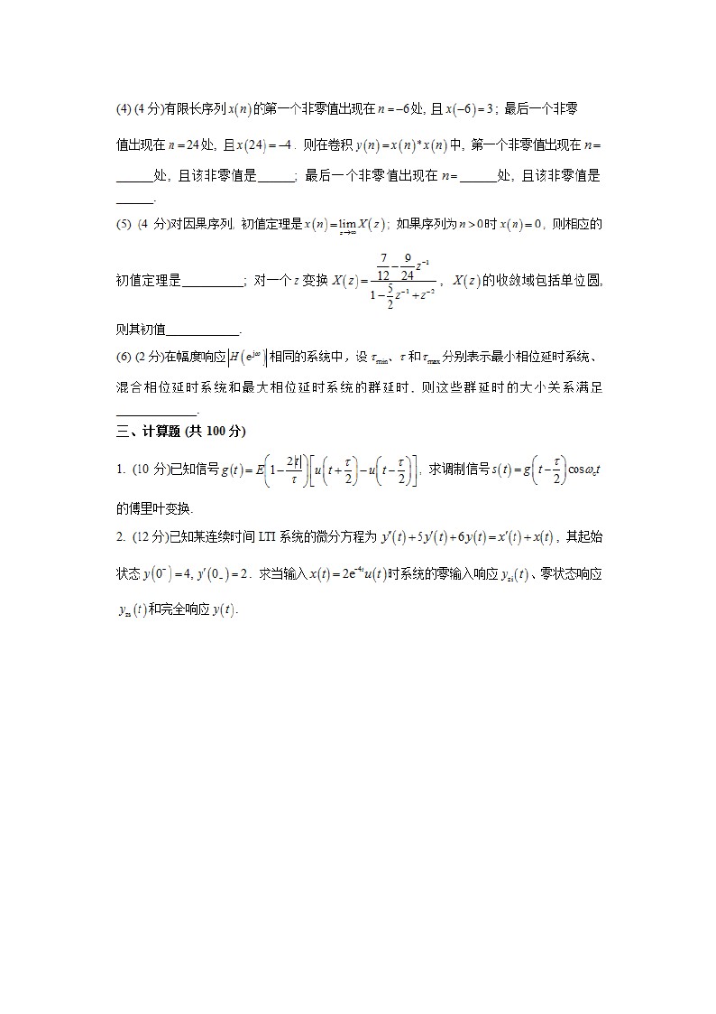 2015宁波大学考研初试信号系统与DSP数字信号处理试题答案解析(5)