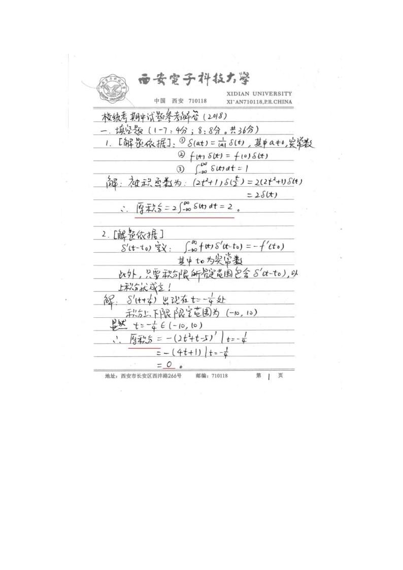 2019西安电子科技大学期中信号系统参考试题答案解析(7)