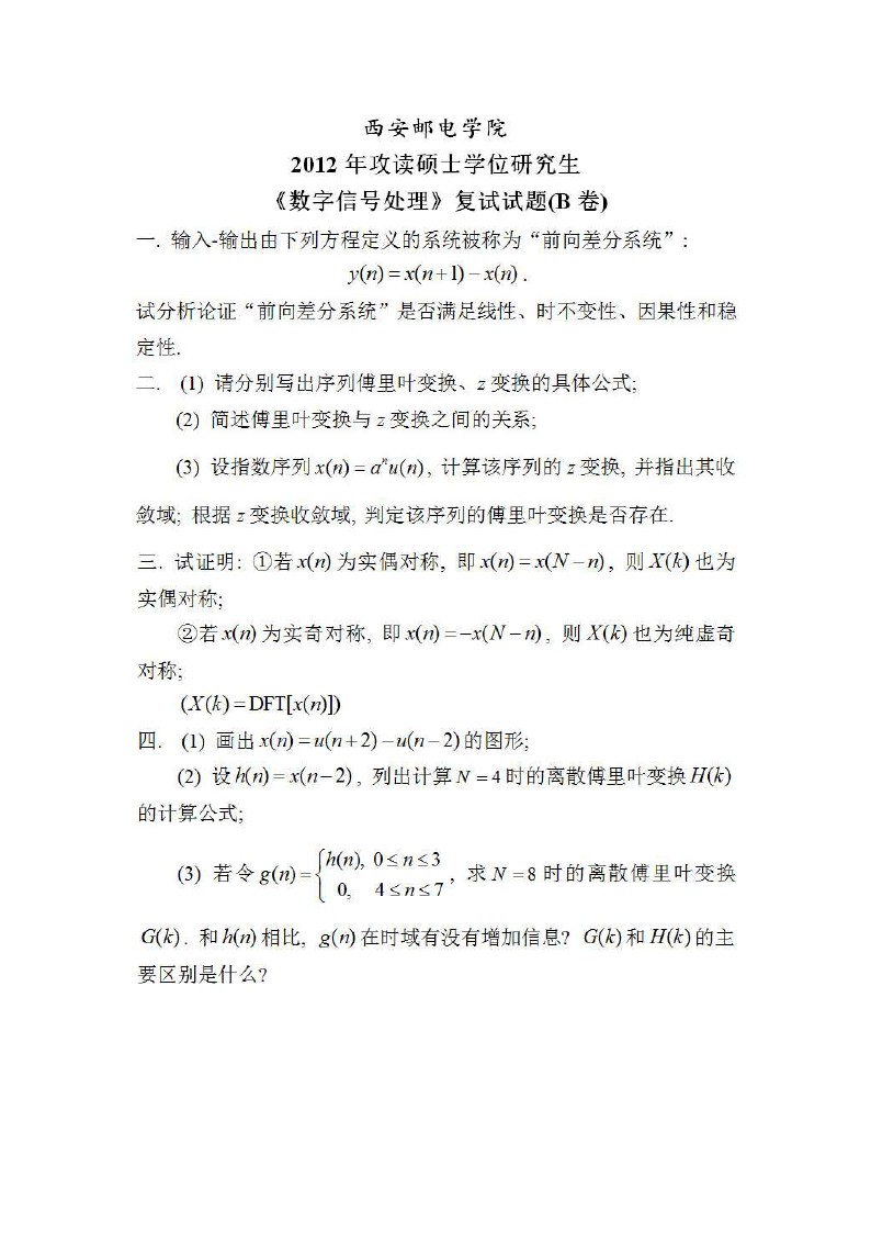 2012年西安邮电大学考研复试DSP数字信号处理试题答案全