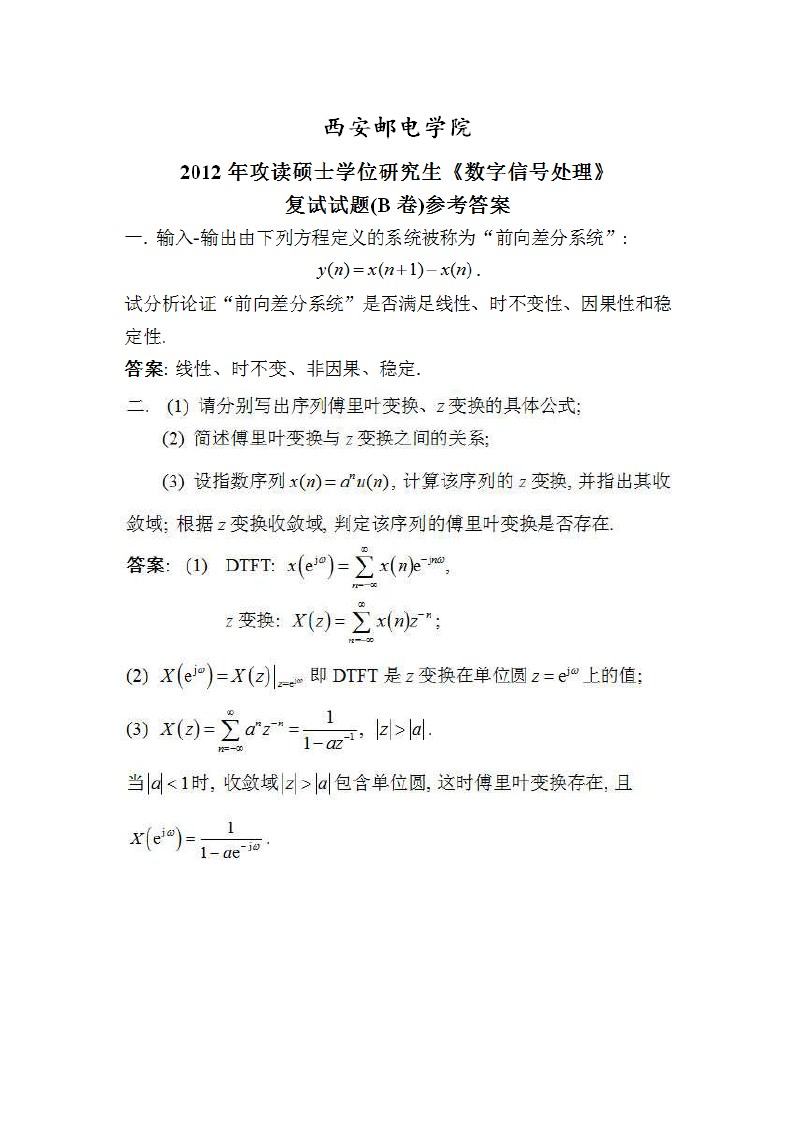 2012年西安邮电大学考研复试DSP数字信号处理试题答案全(3)
