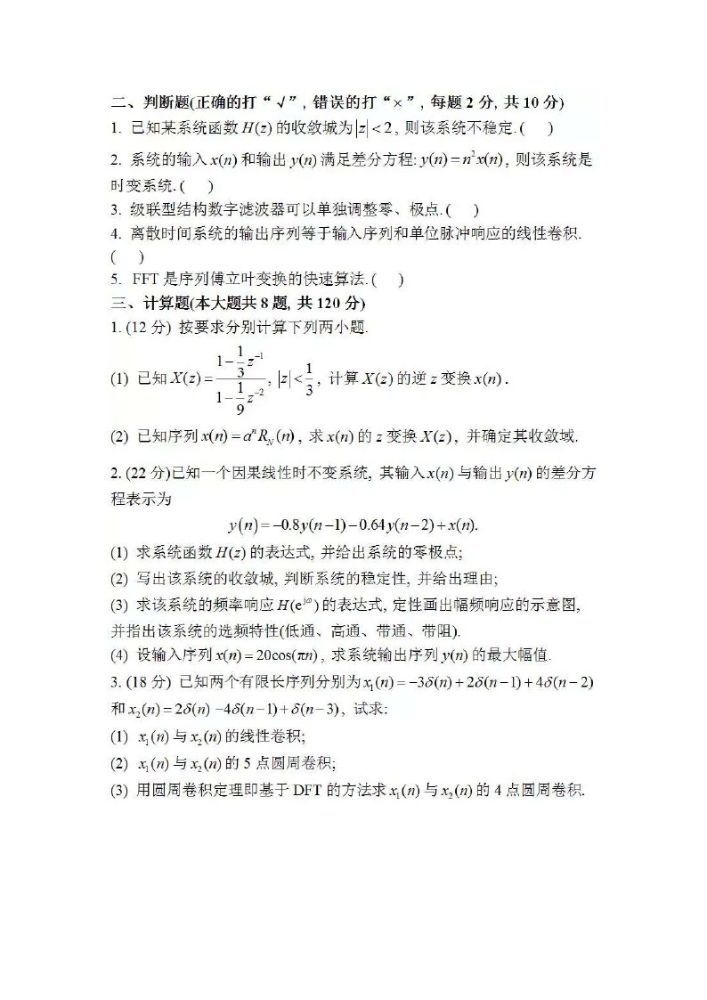 2018杭州电子科技大学考研DSP数字信号处理真题答案解析(2)