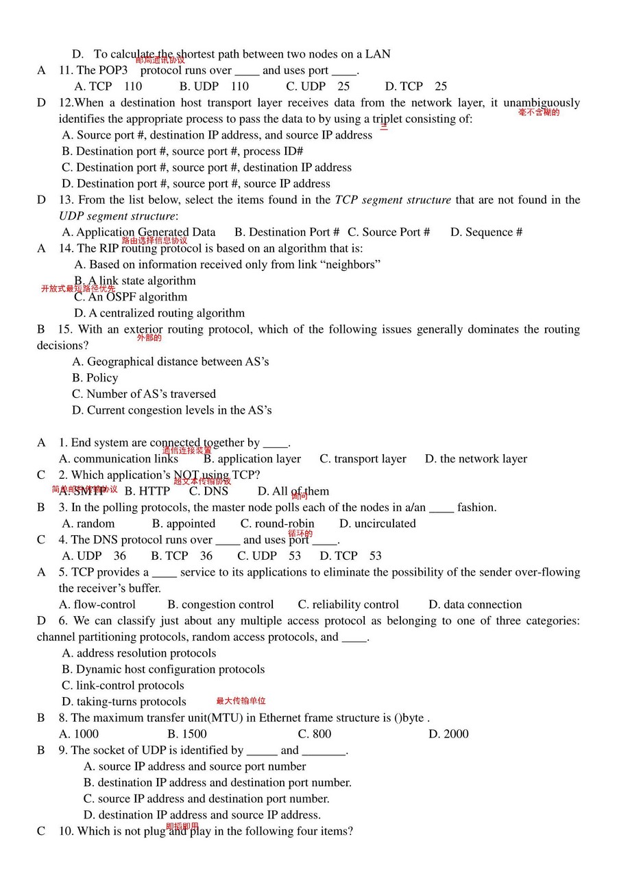 天津理工大学计算机网络考研习题库注释版(2)