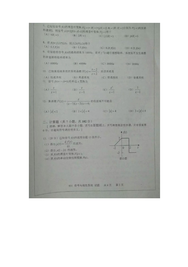 2017西安电子科技大学信号与线性系统931考研真题答案解析(2)