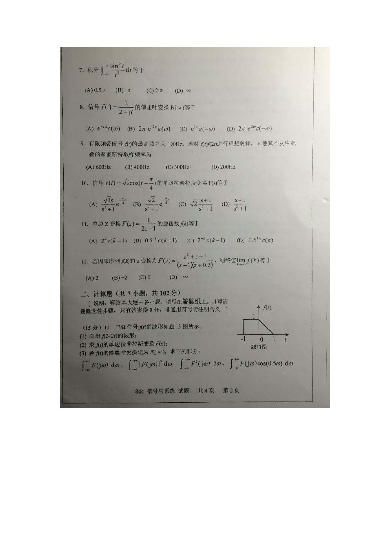 2015西安电子科技大学信号与系统844考研真题答案全解(2)