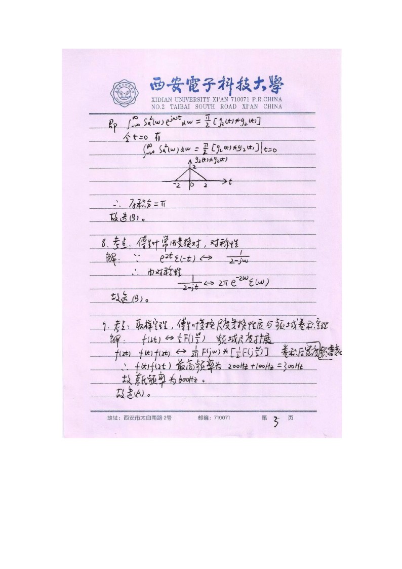 2015西安电子科技大学信号与系统844考研真题答案全解(7)