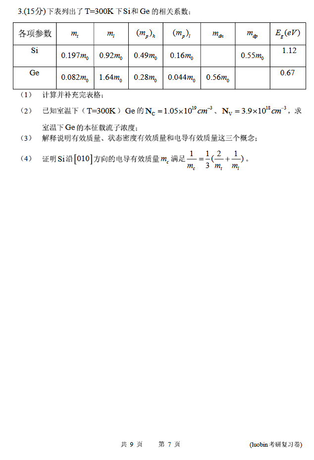2013年东南大学半导体物理929考研复习A卷及答案(8)