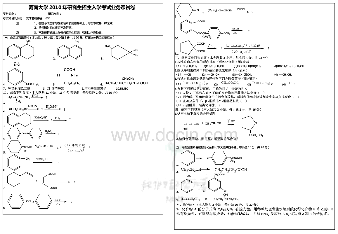 • 219初试真题2019年河南大学文学院615和810专业课真题