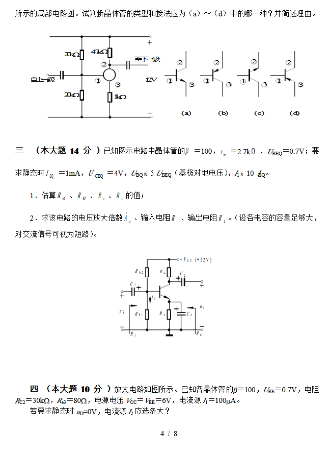 天津工业大学2007年电子技术基础考研真题试卷(4)