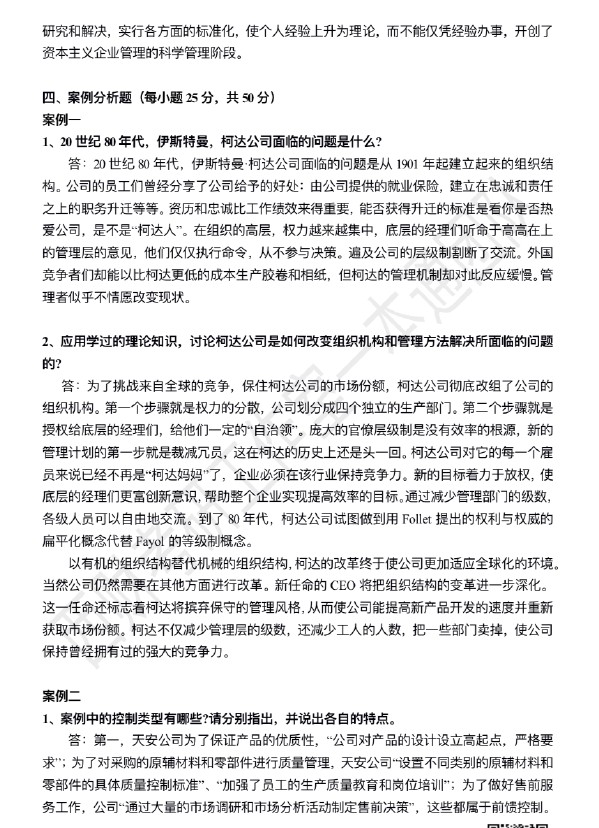 西南财经大学管理学一本通2019考前预测六套卷(图文)(23)