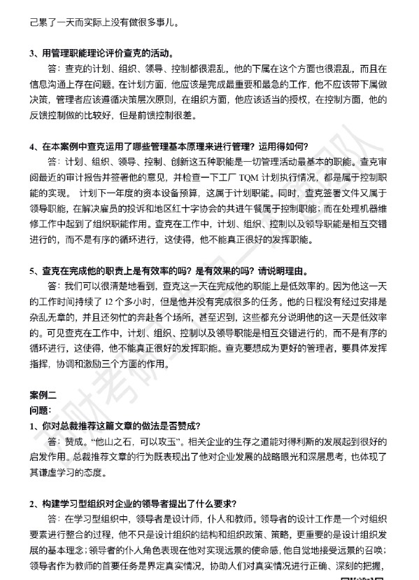 目录封面内容简介目录第一篇 管理绪论 第一章 管理与管理学  1.1 复习笔记  1.2 课后习题详解  1.3 考研真题与典型题详解 第二章 管理思想的演进  2.1 复习笔记  2.2 课后习题详解  2.3 考研真题与典型题详解第二篇 管理职能 第三章 计 划  3.1 复习笔记  3.2 课 ...