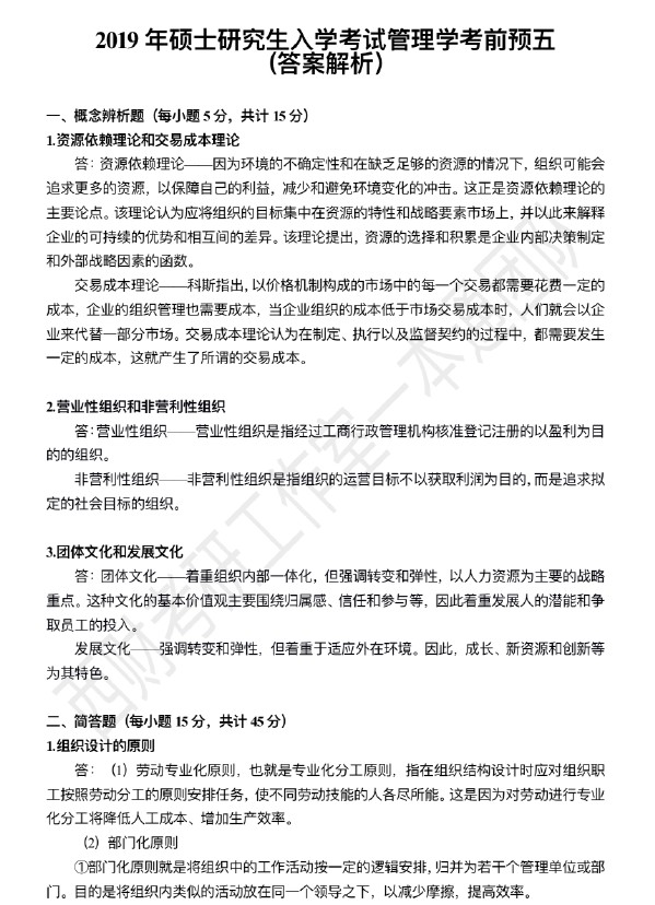 西南财经大学管理学一本通2019考前预测六套卷(图文)(52)