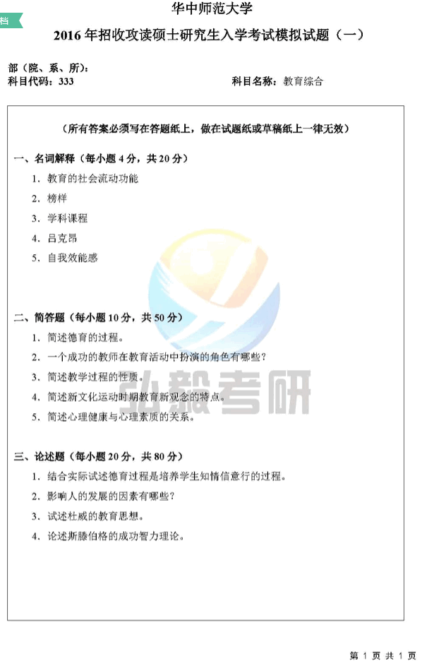绝密押题华中师范大学333教育综合考研押题卷最后8套