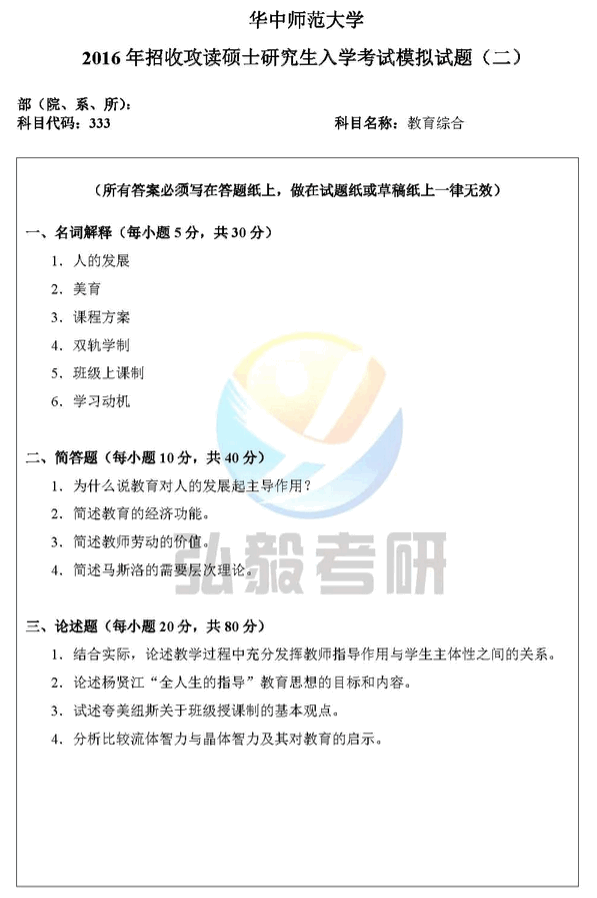 绝密押题华中师范大学333教育综合考研押题卷最后8套(2)