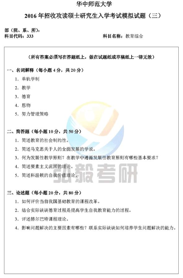 绝密押题华中师范大学333教育综合考研押题卷最后8套(3)