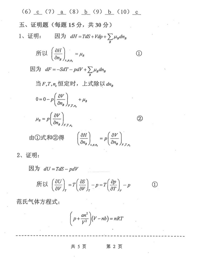 中国海洋大学2007年《物理化学A》考研真题答案(2)