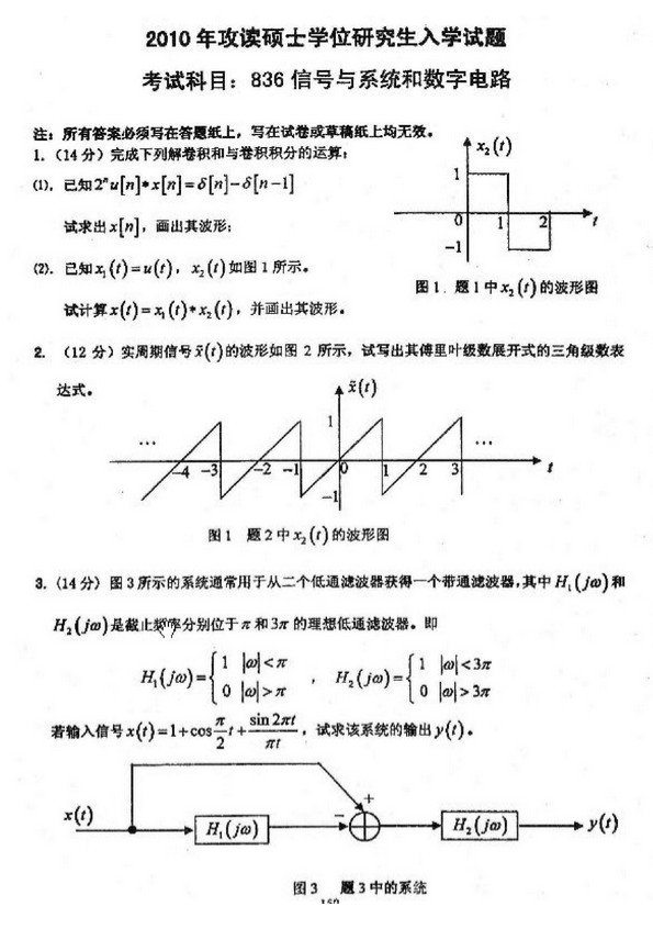 2010年成都电子科技大学836信号与系统和数字电路考研真题及答案(2)