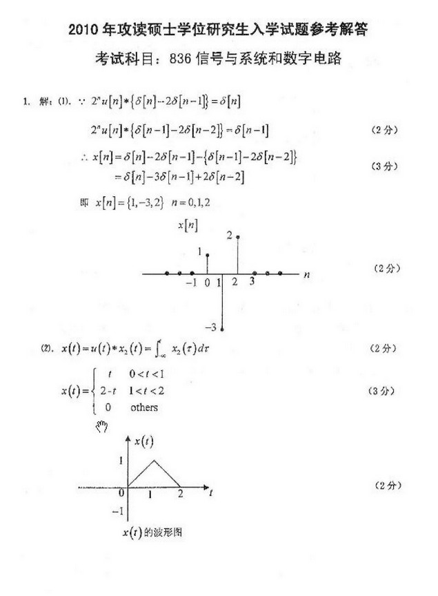 2010年成都电子科技大学836信号与系统和数字电路考研真题及答案(7)