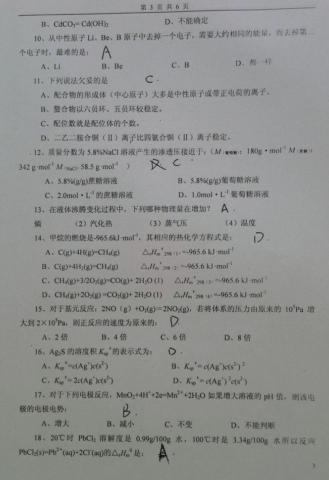 中国矿业大学无机及分析化学考研模拟试题4带答案(3)