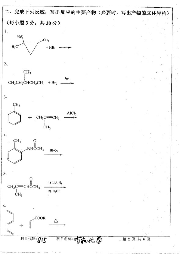 • 2008年中国矿业大学有机化学815考研真题