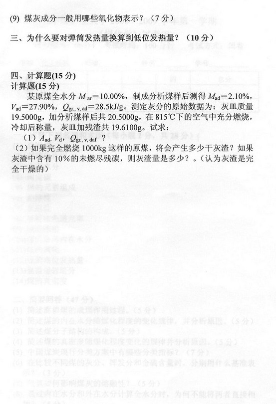 中国矿业大学2008-2009年B煤化学考试试卷带详细答案(2)