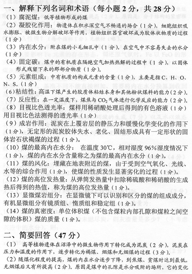 中国矿业大学2008-2009年B煤化学考试试卷带详细答案(3)