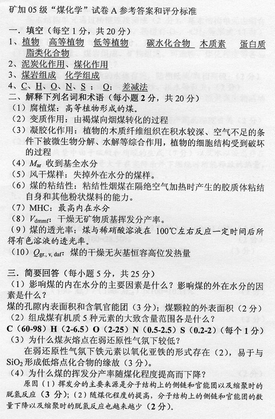 中国矿业大学2007-2008年A煤化学考试试卷带详细答案(3)