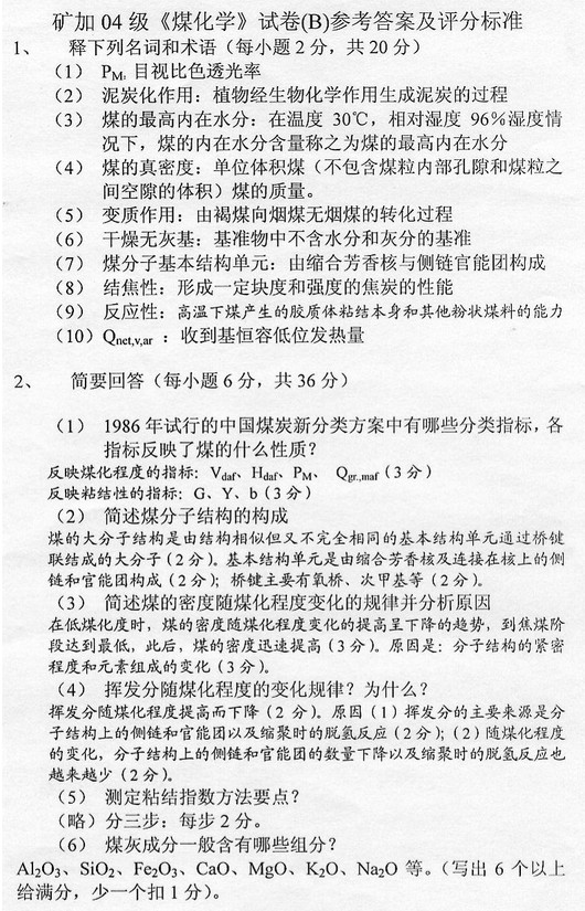 中国矿业大学2006-2007年B煤化学考试试卷带详细答案(3)