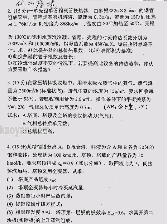 2001年中国矿业大学考研化工原理真题(2)