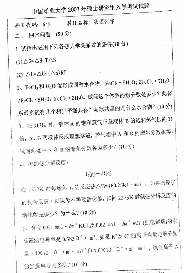 专业课考研资料 本站小编 免费考研网 2019-12-142007年中国矿业大学考研有机化学真题
