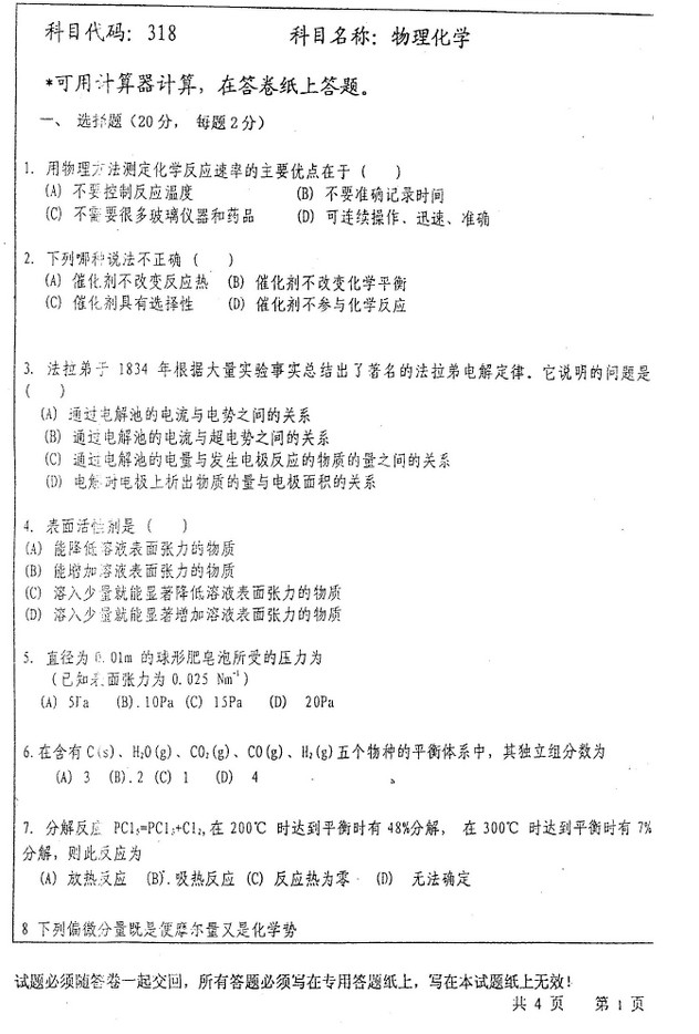 专业课考研资料 本站小编 免费考研网 2019-12-14中国矿业大学2007年物理化学考研真题