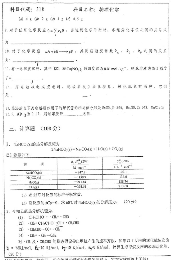 中国矿业大学2006年物理化学考研真题(3)