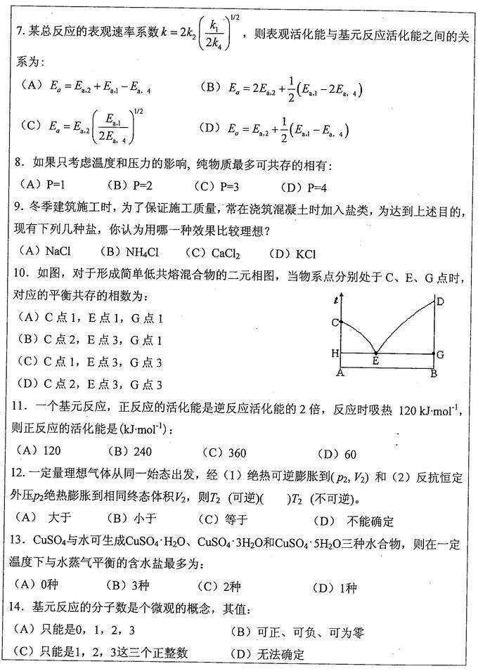 专业课考研资料 本站小编 免费考研网 2019-12-14中国矿业大学2005年物理化学考研真题