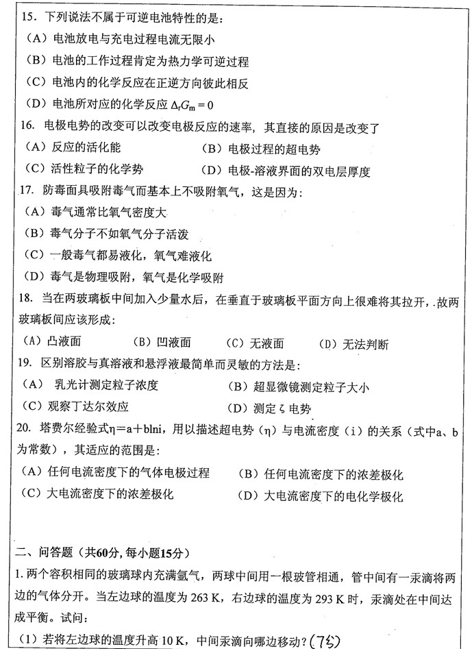 专业课考研资料 本站小编 免费考研网 2019-12-14中国矿业大学2007年物理化学考研真题