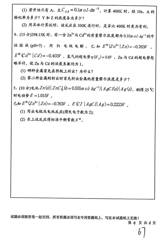 中国矿业大学2009年物理化学考研真题(4)