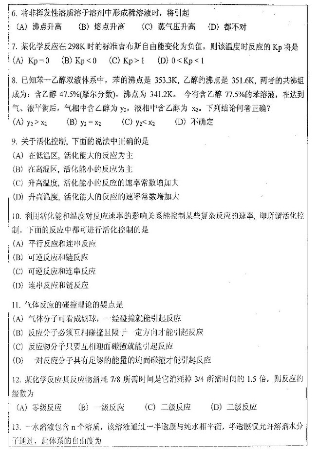 专业课考研资料 本站小编 免费考研网 2019-12-14中国矿业大学2006年物理化学考研真题