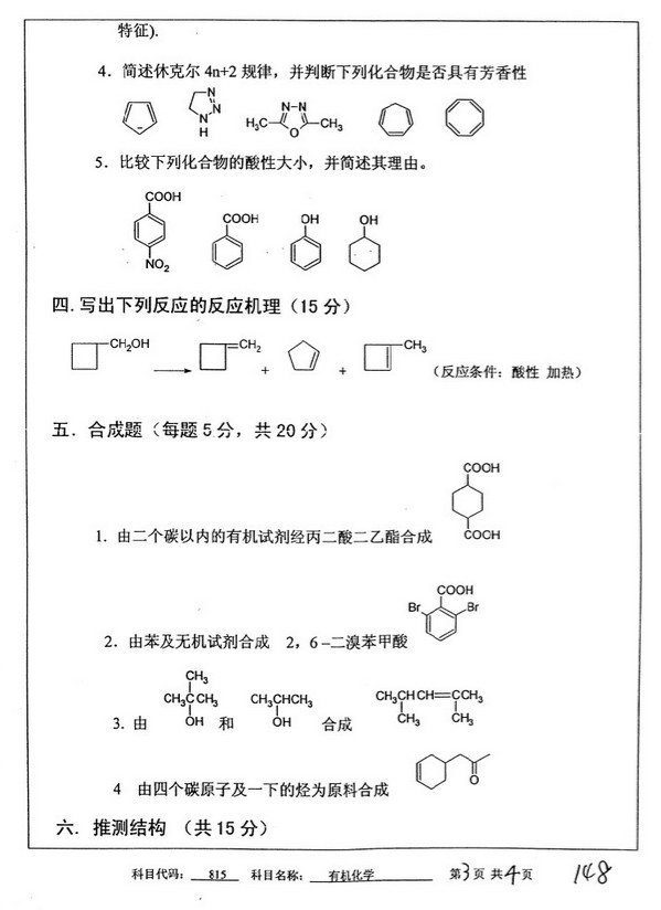 中国矿业大学2011有机化学考研真题(3)