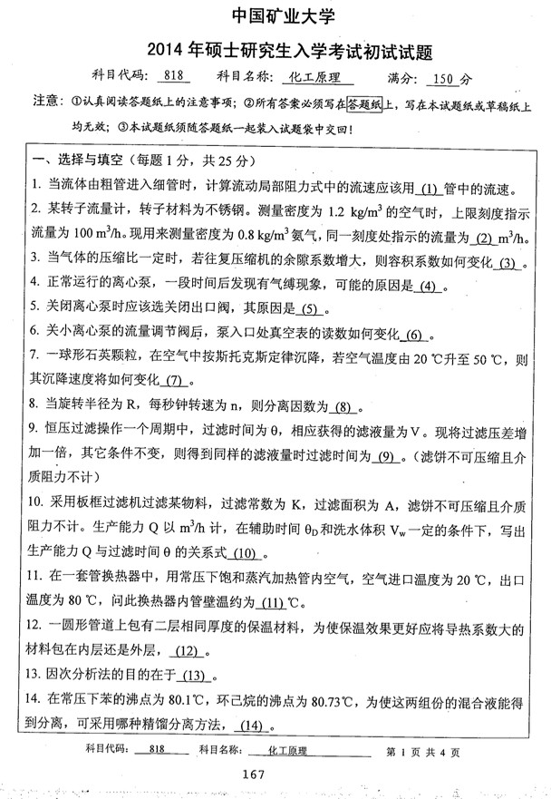 专业课考研资料 本站小编 免费考研网 2019-12-14中国矿业大学2014年物理化学考研真题